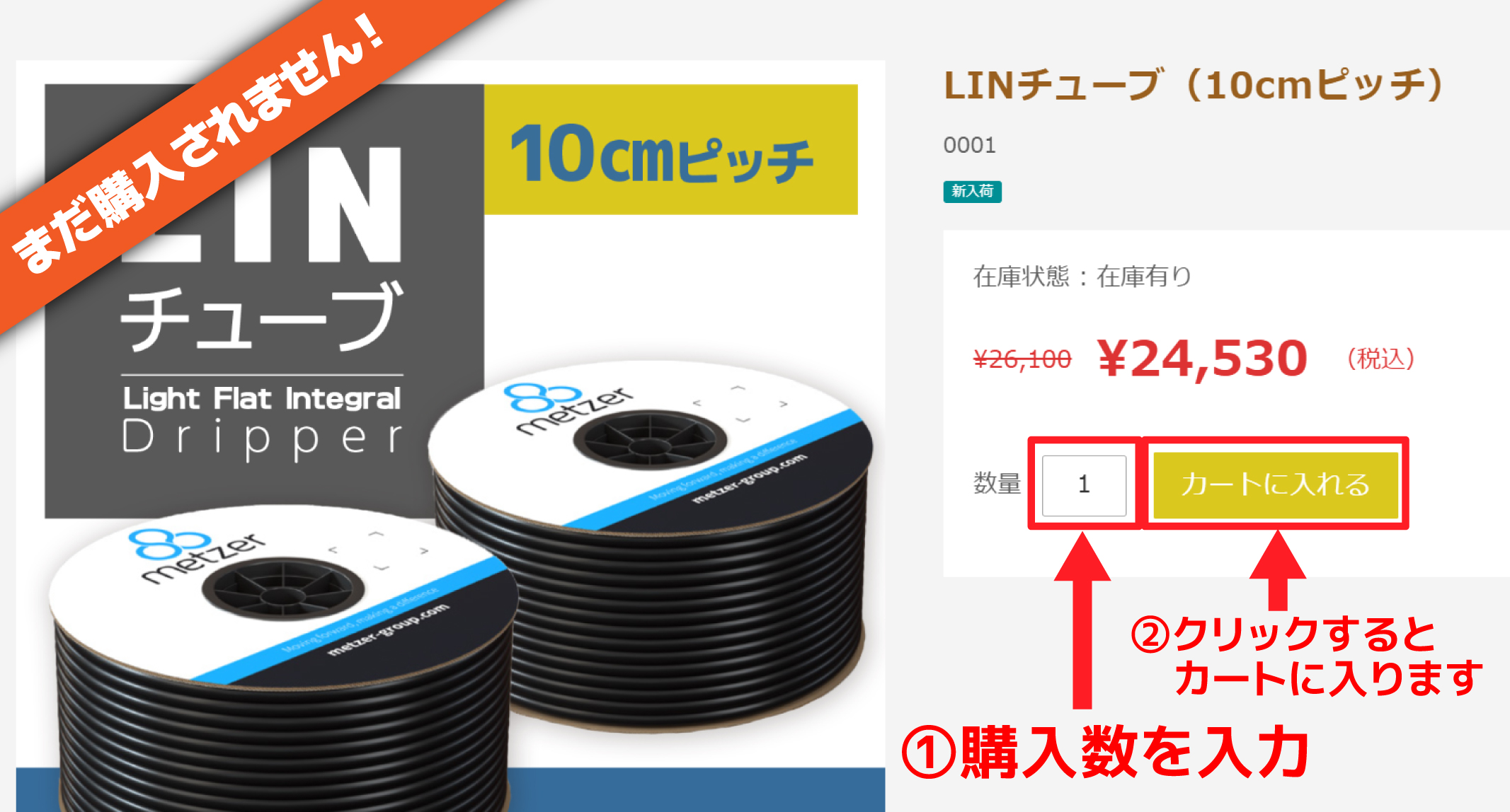 商品ページで、必要な数量を入力して、「カートに入れる」ボタンを押すと、「カート(=お買い物カゴ)」に入れられます。