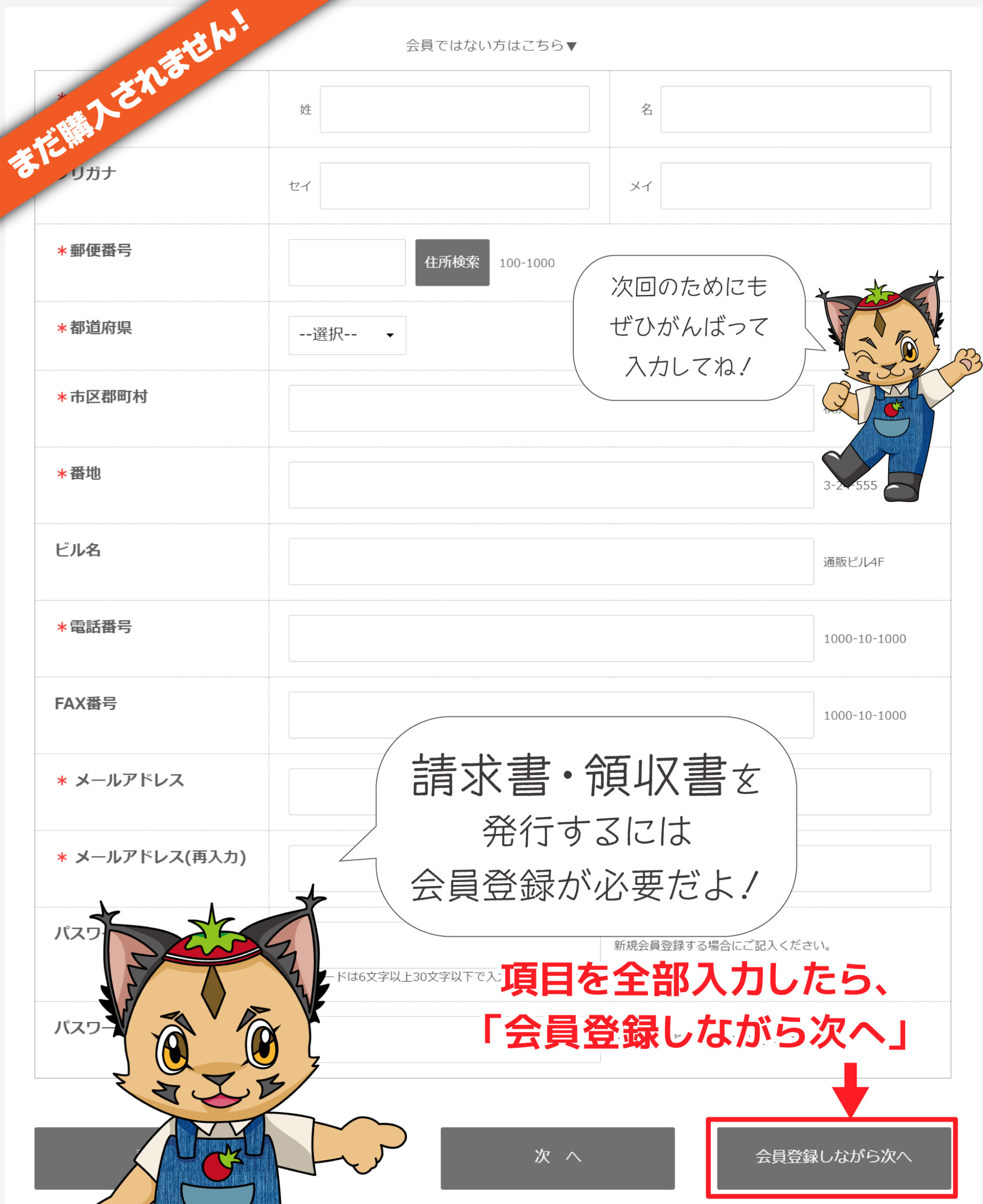 登録しなくても購入は可能ですが、請求書・領収書の発行は会員ページからダウンロードする形なので、会員登録しないと発行できません。