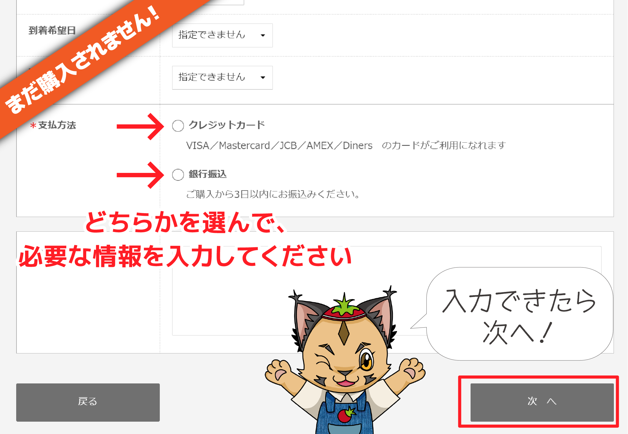 次のページではお支払方法を選びます。